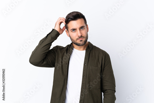 Young handsome man with beard over isolated white background with an expression of frustration and not understanding