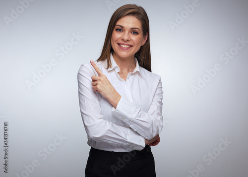 woman, business, isolated, person, point, finger, portrait, teacher, businesswoman, smile, female, people, office, suit, girl, long hair, casual attire, fashion, beautiful, professional, happy, work, young, corporate, manager, executive, men at work, confident, successful, office worker, success, pretty, modern, job, smiling, career, assistant, accountant, studio, caucasian, white, student, entrepreneur, face, confidence, 1, occupation, working, leader
