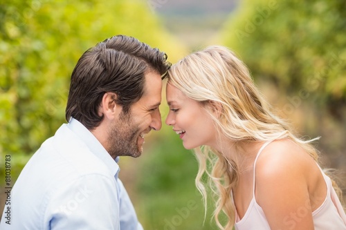man, male, caucasian, young adult, woman, female, vinery, vinification, grape, winery, vine, farm, agriculture, harvest, nature, environment, vine-growing, rural, seasonal, industry, countryside, winegrower, fair hair, blond, light hair, pretty, attractive, romantic, photogenic, couple, human relationships, together, love, happy, smiling, cheerful, sitting, face to face, outdoors