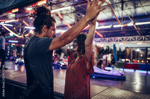 Young happy couple/ Young happy couple enjoying themselves at the amusement park