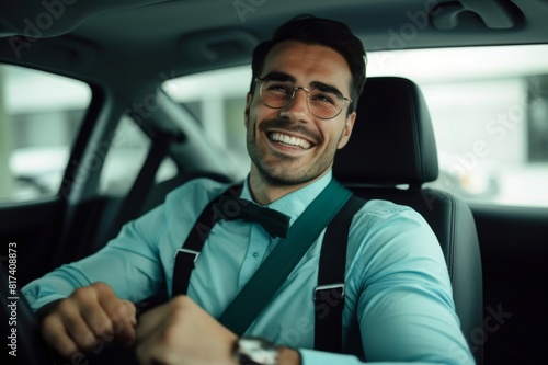 seatbelt, car, young men, fastening, trip, safety, businessman, happy, travel, preparation, vehicle, journey, road safety, driving, responsibility