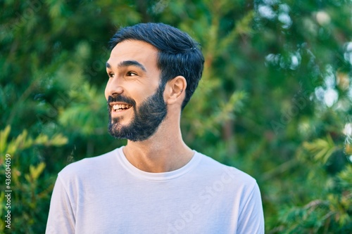 adult, attractive, background, beard, casual attire, cheerful, city, confident, cool, enjoy, expression, face, fun, funny, green, guy, photogenic, happiness, happy, healthy, hispanic, joy, lifestyle, male, man, model, modern, natural, nature, outdoors, park, people, person, portrait, positive, relax, smile, smiling, racked, standing, street, style, summer, sunlight, town, urban, walk, walking