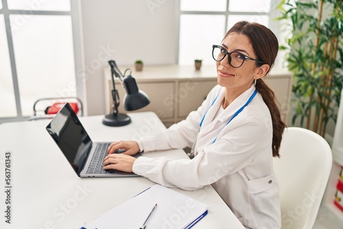young, hispanic, woman, female, adult, person, portrait, beautiful, attractive, fashion, happy, confident, cheerful, confidence, smile, lifestyle, expression, positive, smiling, enjoy, doctor, health care, medicals, medicine, work, working, professional, stethoscope, uniform, nurse, table, desk, surgeon, diagnosis, computer, goggles, laptop, clipboard, document, clinic, center, hospital, room, workplace, indoor, indoor, interior, background