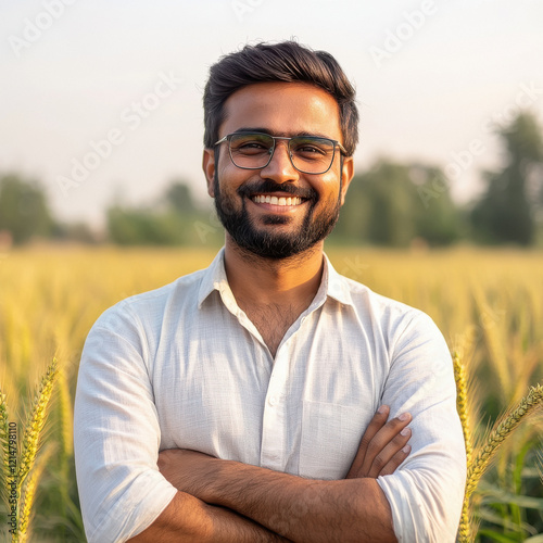 indian, asian, observation, analysis, happiness, photogenic, adult, agronomy, farmer, loan, banker, businessman, agricultural, analysing, business, farming, scientist, biologist, technology, food, farmland, happy, showing, traditional, hand, countryside, lifestyle, background, person, male, india, holding, man, portrait, people, rural, farm, field, young, agriculture, man, village, nature, standing, farmer, ai