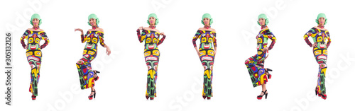 attractive, beautiful, clothes, clothing, costume, dress, elegant, fashion, female, figure, fit, fitness, girl, happy, lady, lifestyle, model, posing, pretty, sensual, sexy, slim, smile, style, suit, vogue, woman, young, vacation, holiday maker, hat, asian, japanese, composite, collage, set, montage, collection, compilation, variation, isolated, white, background, various, pose, elegance, fashionable, glamour, sewing