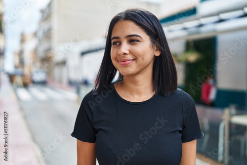 young, latin, hispanic, woman, female, brunette, adult, person, portrait, beautiful, happy, happiness, confident, cheerful, confidence, looking, cool, smile, lifestyle, expression, positive, joy, smiling, laughing, enjoy, fun, funny, laugh, fashion, casual attire, summer, t-shirt, racked, standing, walk, walking, street, city, town, urban, road, outdoors, outside, exterior, background