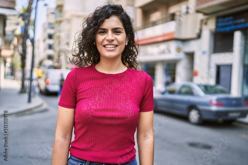 Young latin woman smiling confident standing at street