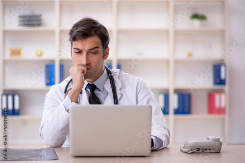 specialist, care, clinic, doctor, health, health care, hospital, medicals, computer, laptop, online, cyberspace, remote, thinking, concerned, worried, focused, concentrated, concentration, medicine, physician, practitioner, recovery, recovering, treatment, working, insurance, healer, man, discussing, explaining, student, young, diagnosis, diagnostic, check-up, examining, check-up, work, consultation, sitting, desk, disease, healthy, medic, male
