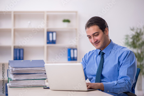 Young male employee and too much work in the office
