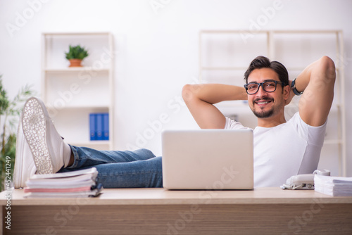 young, man, student, office, freelancer, freelance, t-shirt, employee, business, businessman, adviser, designer, computer, laptop, online, cyberspace, happy, excited, smiling, cheerful, joyful, break, rest, resting, relaxing, work, workplace, manager, working, accountant, workaholic, workload, tied-up, desk, analyst, sitting, assistant, deadline, overtime, reporting, missing, intern, telecommute, telecommuting, telecommuting, virtual, distance