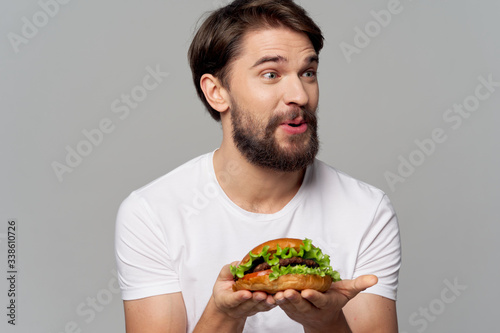 burger, man, hamburger, food, eat, sandwich, ravenous, isolated, people, lunch, happy, person, young, background, fat, meal, eating, holding, face, adult, white, cheeseburger, delicious, fun, healthy, business, funny, sitting, mouth, over, looking, youth, vegetarian, artwork, studio, advertisement, calorie, portrait, human, abstract, tasty, fast, unhealthy, caucasian, diet, dinner, drink, fruit, style, fashion