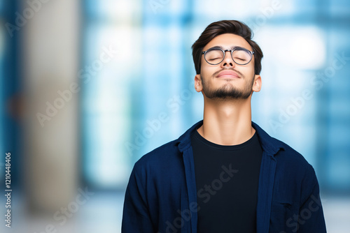 Young man enjoying a moment of tranquility in a modern urban setting