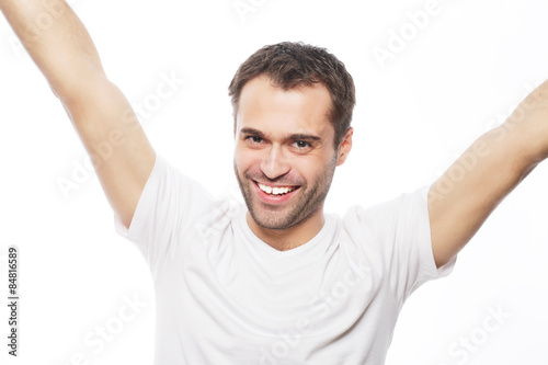 attractive, background, beard, beauty, camera, casual attire, caucasian, cheerful, closeup, face, front, fun, funny, guy, hair, hand, photogenic, happy, holding, image, isolated, making, male, man, person, photo, photographing, picture, portrait, pretty, self, selfie, smart, smile, standing, success, taking, white, young
