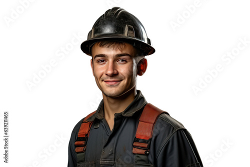 Young Man Labor Worker in Work Uniform and Hard Hat - Symbolizing the Dedication of the Workforce and Emphasizing Industrial Safety Measures - Isolated Transparent Background