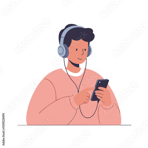 man, smartphone, earphones, music, casual attire, indoor, technology, portrait, relaxed, lifestyle, connection, joyful, modern, youth, entertainment, sound, listening, flat, digital, wearable, comfortable, cosy, cute, personal, communication, device, enjoyment, mobile, happy, social, interaction, leisure, audio, closeup, earphones, fun, casual clothes, pink, everyday, expression, study, youthfulness, relaxing, trend, media