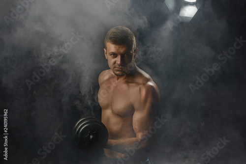 abdominal, active, adult, arm, athlete, athletic, attractive, background, beautiful, beauty, bicep, body, bodybuilder, bodybuilding, building, dark, dumbbell, energy, exercise, fit, fitness, force, guy, hand, photogenic, health, healthy, lifestyle, lifting, lighting, male, man, muscle, muscle, muscular, people, person, portrait, posing, power, smoke, sport, strength, strong, studio, torso, training, weight, physical exercise, young