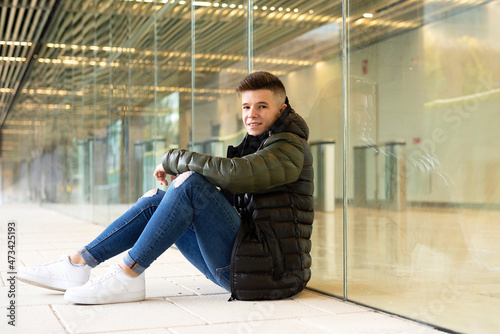 young, male, smiling, 1, outdoors, happy, city, guy, caucasian, smile, adult, street, man, person, urban, casual attire, lifestyle, portrait, photogenic, outside, modern, background, cheerful, style, attractive, fashion, positive, confident, student, alone, copy space, cool, stylish, trendy, day, confidence, happiness, 20s, youth, freedom, clothes, young adult, carefree, candid, positivity, sitting, floor, ground, flooring, relaxing, calm, lonely, leaning, glasses, relax, leisure, resting, rest, break, attitude, daylight, horizontal, corridor, barcelona, spain, teenage, generation y, white, jean, shoe, leg, sleeve, comfort, waist, wood, knee, school, businessman, exterior, relaxed, nap, napping