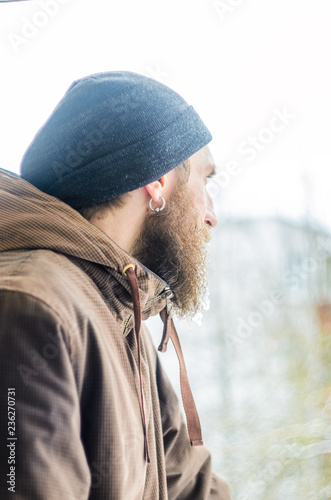 beard, glacé, caucasian, icicle, young, winter, season, weather, freeze, collar, neck, brown, profile, frosting, male, rime, side, man, moustache, nose, head, hoar frost, earring, background, people, outside, closeup, watch, part, piercing, extreme, cold, concept, day, ice, 1, northern, drop, durability, endurance, perseverance, face, fortitude, grey, hair, white frost, hood, hypothermia