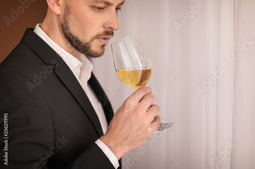 adult, ageing, alcohol, alcoholic, anniversary, background, bar, beverage, booze, caucasian, celebrate, celebration, copy, delicious, drink, enology, event, expensive, festive, favor, glasses, epicure, grape, holiday, indoor, liqueur, male, man, natural, party, person, prestige, eatery, smelling, sniffing, sommelier, space, spirit, taste, tasting, text, traditional, white, wine, winery, young