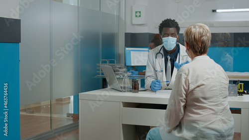 doctor, nurse, medic, patient, woman, medicals, man, office, adult, facility, check-up, cabinet, health care, desk, explaining, treatment, face mask, african american, pandemic, black, consulting, sitting, clinic, old, disease, appointment, stethoscope, profession, uniform, senior, consultation, caucasian, young, medicine, specialist, elderly, healing, discussing, hospital, technology, talking, computer, prescription, professional, indoor, pensioner, disease, medication