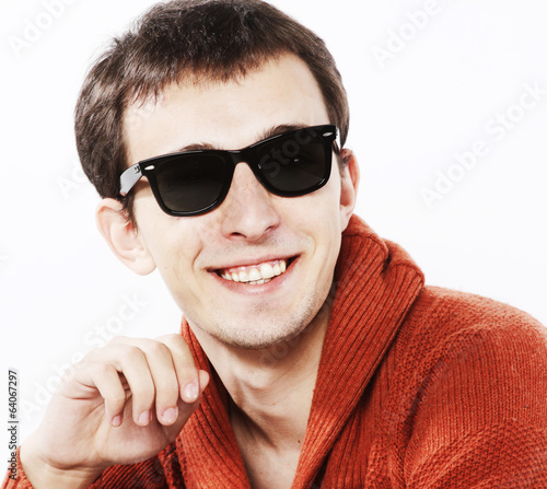 adult, alone, attractive, beautiful, beauty, black, boy, casual attire, caucasian, close, closeup, confident, cool, cute, expression, face, fashion, front, goggles, grey, hair, photogenic, head, isolated, lifestyle, look, male, masculine, man, model, modern, person, portrait, pose, proud, seductive, serious, shirt, single, smart, studio, style, sunglasses, trendy, urban, white, young