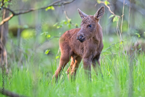 animal, mammal, wildlife, wild, nature, moose, young, forest, animal, fauna, baby, grass, green