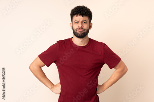 adult, angry, annoyed, arab, arabian, arabic, background, bad, beige, curly, disappointed, expression, frustrated, frustration, hair, isolated, mad, male, man, moroccan, people, person, problem, sad, stressed, studio, unhappy, wall, young, youth, anger, man