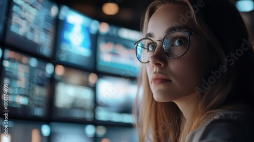 technology, digital, professional, woman, computer, workstation, screen, goggles, sharpened, concentrated, office, statistic, graph, chart, business, finance, innovation, programming, modern, workplace, industry, information, display, interface, career, expertise, sophisticated, analysing, intelligent, insight, research, productivity, multitask, high technology, strategy, corporate, cognition, employee, working, contemporary, operation, technical, meticulous, advanced
