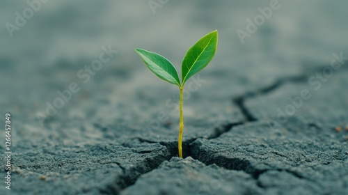 Young Sapling Growing Through Cracks in Concrete Symbolizing Resilience, Self-Growth and Determination Against Adversity in Urban Environment