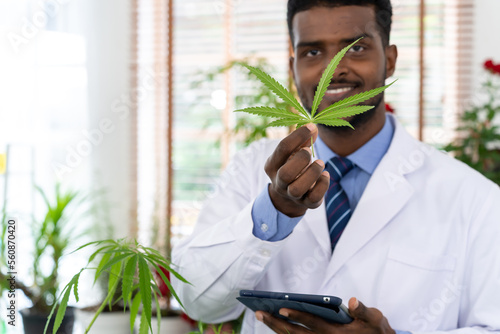 Young scientist male working with Analyzing fresh marijuana in laboratory