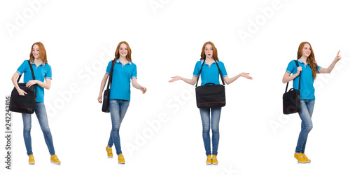 composite, collage, set, montage, collection, compilation, variation, isolated, white, background, various, pose, pursed, bag, casual attire, backpack, back, cheerful, class, college, education, fun, graduate, happiness, happy, holding, learn, female, woman, school, standing, student, study, studying, successful, teenage, teenage, university, young, to, book, book, funny, girl, jean, sporty, redhead, style, textbook, youth