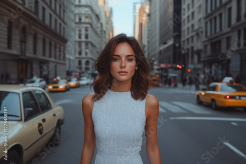 woman, business, businesswoman, new, york, city, new york city, street, urban, style, fashion, elegant, dress, walking, yellow, cab, taxi, car, traffic, building, skyscraper, metropolis, travel, tour tourism, lifestyle, daytime, contemporary, modern, portrait, young, adult, female, caucasian, attractive, pretty, beauty, confidence, ambition, success, career, professional, executive, leader, manager, entrepreneur, achievement