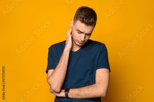 people, isolated, upset, fashion, man, male, portrait, young, photogenic, guy, coiffure, stylish, casual attire, style, clothes, slim, thin, background, caucasian, model, white, person, standing, teenage, trendy, expression, 1, face, attractive, cheerful, studio, looking, fashion model, smart, modern, single, shirt, one person, tall, emotion, one man only, basic, human