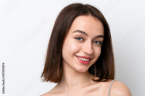 girl, woman, people, person, female, woman, lady, attractive, beauty, pretty, beautiful, youth, young, adult, hair, blue, eye, 1, portrait, ukrainian, coiffure, background, isolated, wall, white, blank, care, clean, cute, elegance, face, fresh, glamour, health, healthy, skin, happy, laugh, laughing, smile, happiness