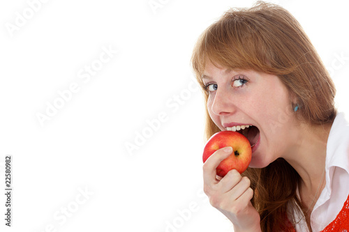 apple, attractive, beautiful, beauty, diet, eat, energy, female, food, fresh, freshness, fruit, girl, grin, happy, health, health care, healthy, isolated, lady, life, lifestyle, losing, mouth, natural, nourish, nourishment, obesity, organic, people, person, pleasure, pretty, red, shirt, smile, success, successful, teeth, virgin, vitamin, white, woman, young, caucasian, 1, finger