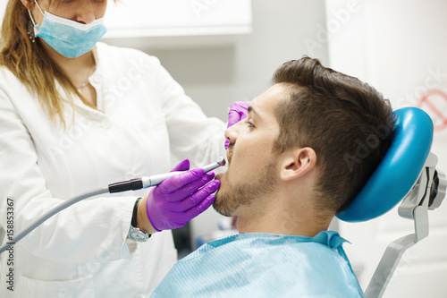 dentist, dental, dentistry, patient, smile, doctor, health, treatment, medicine, clinic, oral, beautiful, healthy, white, care, surgery, woman, man, clean, orthodontist, female, professional, men at work, teeth, surgeon, make well, glove, teeth, office, chair, blue, examining, procedure, cary, young, people, person, girl, happy, portrait