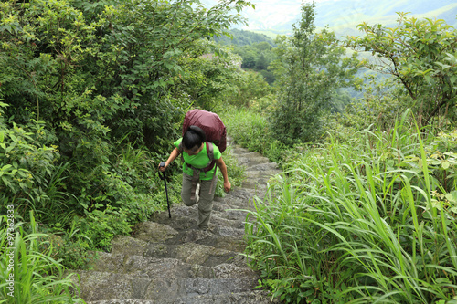 adventure, asian, backpack, backpacker, black, chinese, climber, climbing, copy, enjoyment, explore, female, forest, freedom, grass, green, hiker, hiking, morning, mountain, nature, 1, peak, pole, rock, sky, space, stair, staircase, step, stick, stone, stretching, success, summit, trail, travel, tree, trekker, trekking, trip, woman, young