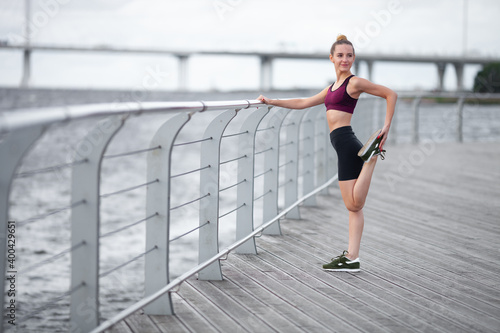 missy, training, stretch, physical exercise, lifestyle, fitness, exercise, athlete, caucasian, day, embankment, female, figure, healthy lifestyle, leggings, one person, outfit, physical activity, slim, sneaker, sport, activewear, street, summer, warmup, woman, physical exercise, young