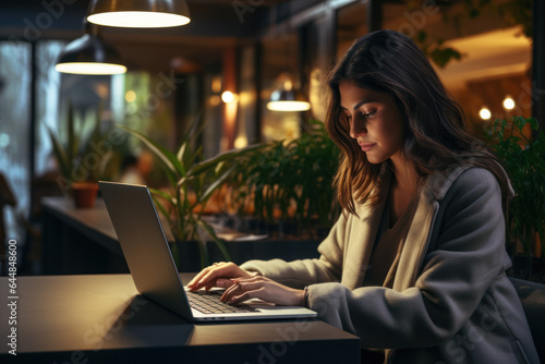 Young Woman Freelancer Working on Laptop at Café