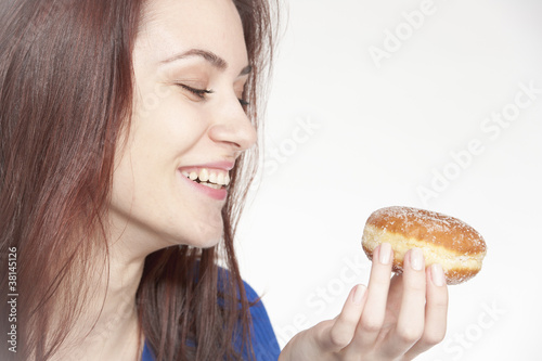 donut, donut, donut, donut, snack, woman, young adult, female, adult, adult, beautiful, caucasian, cheerful, enjoy, enjoying, food, indulgence, lady, looking down, people, smile, smile, smiling, snack, studio shot, temptation, tempted, tempting, toothy smile, 20s, 20, woman, young, young adult, happiness, happy, hold, holding, horizontal, looking, portrait, portrait, half face, studio shot