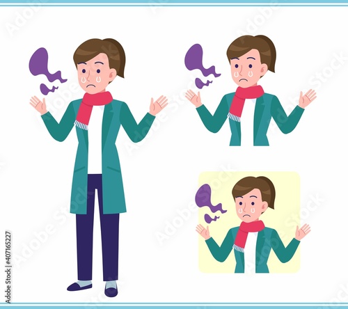 character, simple, vector, set, upper body, young, kind, woman, girl, missy, winter clothes, coat, green, muffler, student, college students, smell, scent, perfume, health, health care, prevention, disease, hospital, crying, sorrowful, bankruptcy, remorse, disappointment