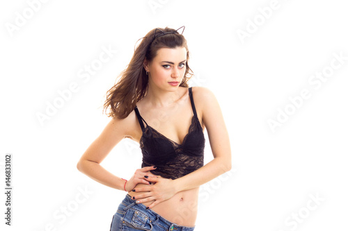 adult, attractive, beautiful, beauty, black, body, bra, brunette, caucasian, elegance, elegant, fashion, female, feminine, fit, glamour, gorgeous, lady, lingerie, model, 1, panty, posing, pretty, sensual, sensuality, sexual, slim, studio, underclothes, underclothing, woman, young, lace, accessory, accessory, hair, jean, denim, short