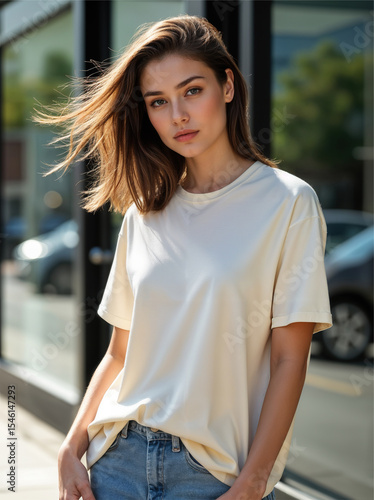 Young woman in casual attire posing outdoors