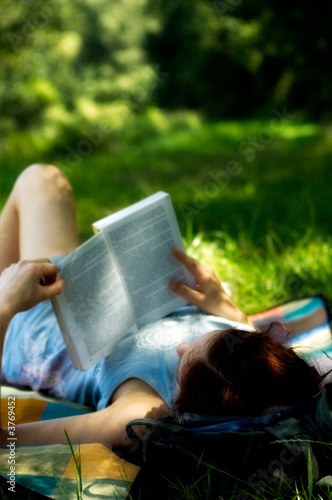 woman, reading, book, nature, adult, barefoot beach, barefooted, behind, blue, calm, closeup, exterior, female, garden, girl, grass, green, hat, leisure, outside, outward, park, recline, recreation, relax, relaxation, season, to sit, sitting, straw, young