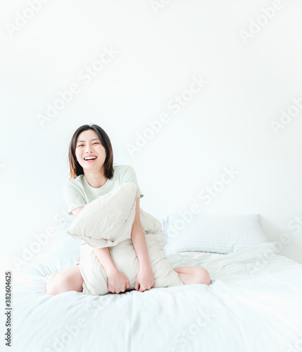 mature, sexy, elegant, intellectual, pillow, to sit, chinese, indoor, home, bedchamber, bright, asian, plain, lazy, clean, young, woman, beautiful, confident, healthy, room, white, life, way of life, alone, comfortable, leisure, nature, happy, smile, short hair, vest, suspenders, cosy, girl, woman, portrait, daytime, minimalism, cute, optimistic, blank, modern, smile, japanese