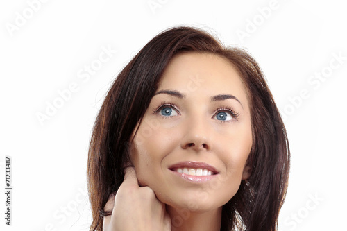 woman, portrait, looking up, human face, thinking, looking, human eye, people, beautiful, isolated, beauty, cheerful, happy, young, female, dreaming