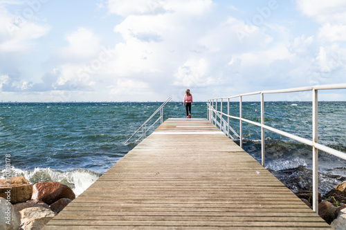 people, breakwater, sea, woman, water, adult, missy, calmness, leisure, nature, relaxing, scenic, outdoors, horizon, environment, horizontal, 1, day, colours, rural scene, scandinavia, sweden