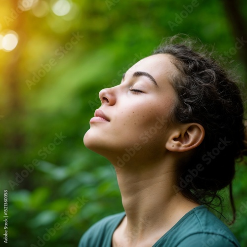 woman, relaxing, forest, nature, sunlight, calmness, peace, serenity, beauty, closeup, profile, green, natural, calm, expression, bliss, leisure, lifestyle, youth, girl, summer, breathing, meditation, solitude, thoughtful, softness, emotional, sunshine, joy, wellness, healthy, environment, mindfulness, peacefulness, fresh, vibrant, spirit, radiant, harmony, connection, health, balance, person