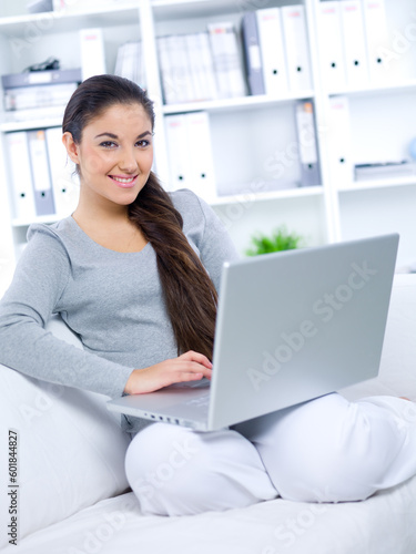 home, technology, female, girl, woman, caucasian, keyboard, computer, life, closeup, beautiful, hand, smile, happy, modern, human, alone, model, house, look, individual, image, portrait, pretty, person, couch, attractive, living, picture, 1, photograph, screen, electronic, youngster, humanity, nice, device, beauty, white, close, head, hair, adult, live, background, color image, face