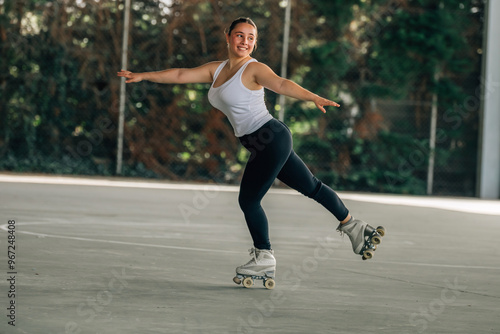 young woman training or doing sports outdoors, skater